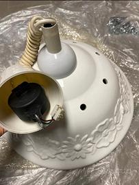 Vendo raffinato lampadario in porcellana decorato con delicati motivi floreali, perfetto per cucina e tavernetta mancante di lampadina ma in ottime condizioni e funzionante.