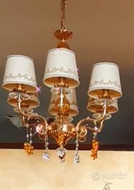 Lampadario prestigioso in ottone pesante con inserti di murano color ambra e cristallo Swarovski . Preso 10 anni fa 1200 k