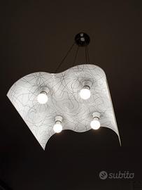 Lampadario moderno quattro luci in vetro serigrafato. € 50,00