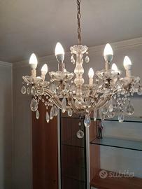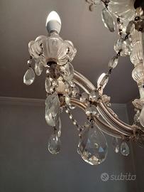 Bellissimo lamapdario vintage. Gocce vetro martellato. 8 luci.