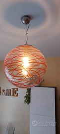 lampadario in vetro decorato trasparente e rosso, circa 50 cm di diametro