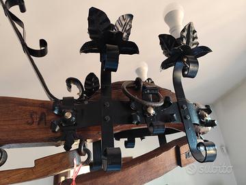 vendo lampadario, tutto fatto a mano, in ferro battuto e legno, creato da un giogo x buoi.