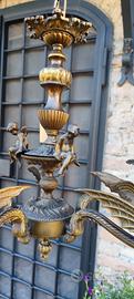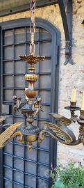 Lampadario bronzato con putti e draghi alati 5 lampade