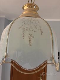 Vendo eleganti coppia di lampadari a sospensione in vetro satinato decorato con motivo floreale e struttura in ottone.