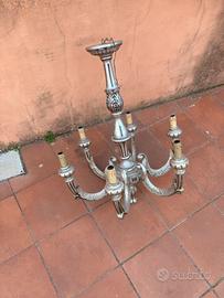 Lampadario artigianale antico in legno