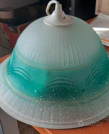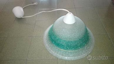Lampadario Classico a sospensione con struttura in plastica bianca e diffusore in vetro brillantato con corona celeste, misure diffusore in vetro Diametro 30cm, altezza 13cm. Regolabile in altezza minima 20cm, massima 70 cm per ogni esigenza. Facile installazione, Coppetta copri fili inclusa per l'installazione a soffitto. Portalampadina E27. In ottime condizioni. RITIRO a VS CARICO, Roma zona Casilina-GRA. Per info 351.8484624 Sergio