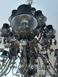 Lampadario muno in acrilico con 12 cappellete nere