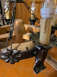 Lampadario rustico, con legno e ferro battuto. Sei porta lampadine. prezzo trattabile