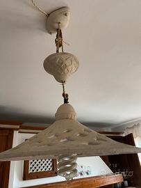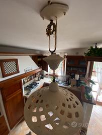Lampadario in ceramica rustico fatto a mano artigianale sospeso con regolazione di altezza in cordoncino. Abbinato con lampada in ceramica rustico fatto a mano angolare fisso. Si preferisce consegna a mano per la delicatezza dell oggetto.
