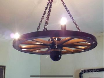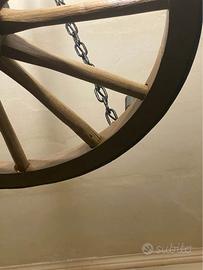 Lampadario artigianale realizzato a partire da un’autentica ruota di carro d’epoca.