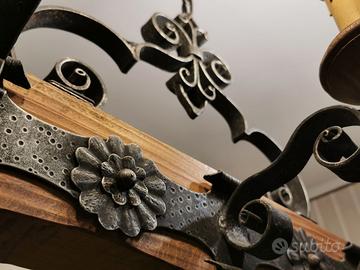 Vendo lampadario in legno massello e ferro (tipo ferro battuto), predisposto per 6 lampadine, stile rustico. Vendo a euro 90. Ritiro a mano a Monza, oppure possibilità di consegna anche in provincia di Lecco e Sondrio (previo accordo).
