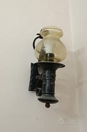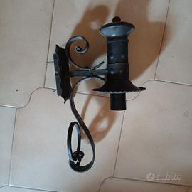 Lampadario rustico, in ferro battuto e legno con due applique. In perfette condizioni e funzionante! Ritiro a Bari città!
