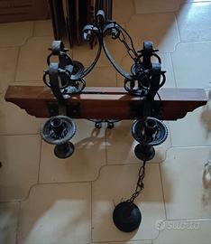Lampadario rustico in legno e ferro battuto