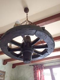 Vendo bellissimo lampadario rustico ricavato da antica ruota di carretto