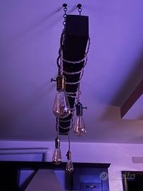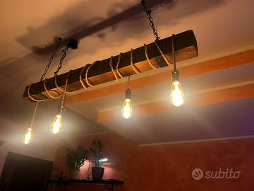 Lampadario in legno realizzato su misura, come questo in foto o lo realizzo su richiesta. Dimensioni 130cm lunghezza con sezione trave 11x9cm 4 lampadine edison con porta lampada vintage con accensione regolabile singolarmente.
