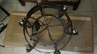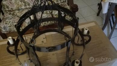 bellissimo lampadario tondo in ferro in buonissimo stato adatto a taverne o soffitti a travi e travicelli ci sono anche i paralume in vetro non in foto vendo per cambio arredamento
