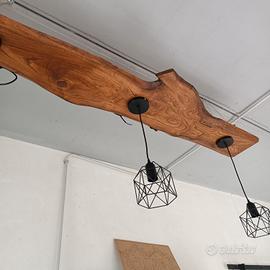lampadario rustico in legno castagno.. lunghezza portalampada regolabile
