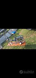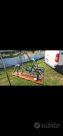 lampadario rustico artigianale con tavola castagno con due punti luci più bicicletta mini graziella fissata sopra ...con 4 catene x fissarla al soffitto