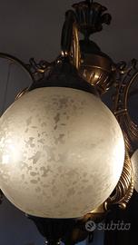 Lampadario sala 6 luci in ottone e vetro satinato lavorato come da foto, funzionante e ancora da smontare. Si cede per cambio arredamento. Prezzo lievemente trattabile. Ritiro a carico dell'acquirente.