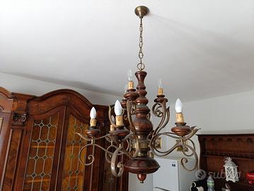 lampadario classico da sala in legno e metallo...vendo per cambio stile