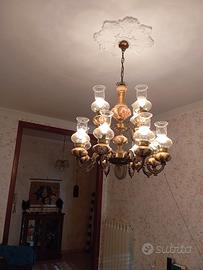 vendo lampadario 12 luci in ottone e ceramica.€. 100