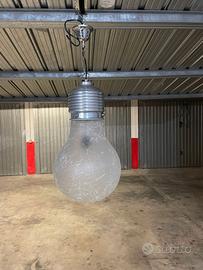 Lampadario a forma di lampadina in vetro satinato e alluminio altezza 50cm attacco E27