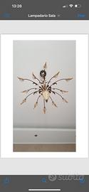 Lampadario per salone in alluminio lavorato con vetro e porcellana. Portalampada per faretti