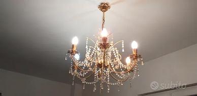 Lampadario con bagno galvanico in oro zecchino e strass swaroski crystals. Linea lampadari strass Verona. Altezza regolabile.