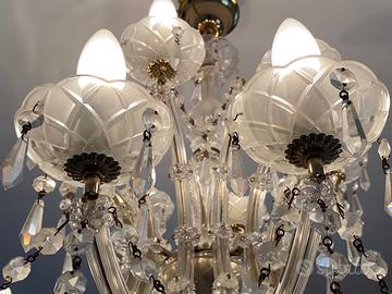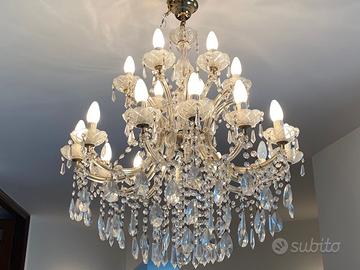 Vendesi bellissimo lampadario in vetro perfettamente funzionante (18 lampadine, 12 sul livello inferiore e 6 sul livello superiore) e integro. Diametro massimo 75cm e altezza complessiva (lampadario e pendenti) 100cm. Disponibile per ritiro a mano ad Andora (SV) oppure a Como, a Saronno (VA) o a Castelletto Ticino (NO), previo accordo. Spedizione non inclusa e da quantificare.