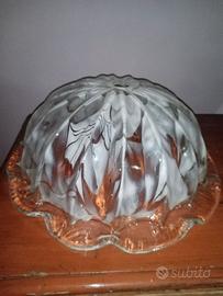 Lampadario in vetro Murano lavorato a mano, diametro circa 60cm altezza cm 25, completo di porta lampada. Vetro spesso circa 4 kg di peso. La lavorazione a mano è caratterizzata da asimmetrie. Appeso un paio di mesi, cambio arredo messo in disparte.