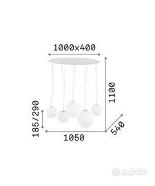 Ideal-Lux Mapa Bianco SP5. Lampadario moderno a 5 luci con diffusore a sfera in vetro bianco soffiato e acidato, vendo in condizioni perfette.