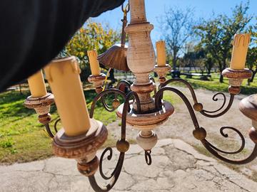 Vendo lampadario in legno e metallo, stile shabby chic. Non spedisco.