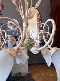 struttura materiale metallo avorio con decorazioni a mano e vetro bianco satinato.