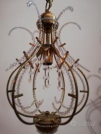 Lampadario in ottone e cristalli singolo punto luce, ottime condizioni. Completo di catena e gancio. Solo ritiro sul posto e pagamento in contanti alla consegna.
