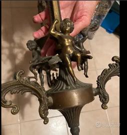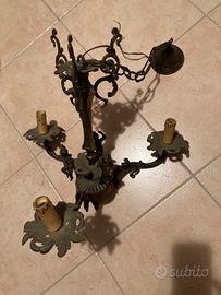 Lampadario anni 40/50 esyemsione 66 cm. 3 porta lampadina con riproduzione candele e 3 PUTTI sul centro on bronzo. Vendo solo sul piato prevua visione Euro 45