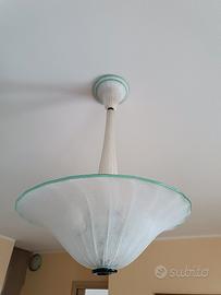 Coppia formata da lampadario da soffitto e lampada da terra con innesti in vetro di Murano. Lampada da terra base 30cm altezza 165cm con luce dimmerabile. Ritiro a domicilio.
