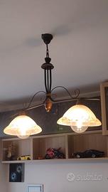 Vendo lampadario da soggiorno cucina in ferro legno e vetro con doppio punto luce. Usato come nuovo in ottime condizioni. Chiedo 38 euro.