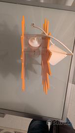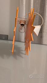 Lampadario in legno a forma di sole. Usato poco e perfettamente funzionante. Colore Giallo/arancione . Per i dettagli elettrici vedere etichetta tra le foto.