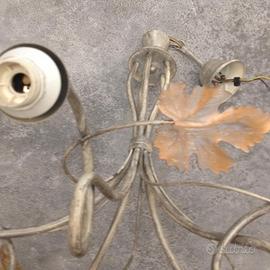 cambio inutilizzo come da foto usato pochissimo LAMPADARIO SOSPENSIONE A 5 BRACCI con 5 PUNTI LUCE e 5 FOGLIE ORNAMENTALI color RAME