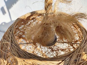 bellissima e originale lampada a sospensione in corda risalente agli anni 70, ottimo stato di conservazione, nessun difetto. dimensioni: diametro cm 37