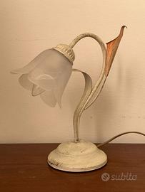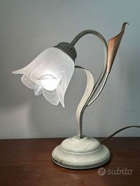 Lampadario a sospensione stile floreale con 5 attacchi luce in vetro: diametro circa 60 cm, altezza circa 80 cm. Abbinata abat jour nello stesso stile (altezza circa 30 cm). Prezzo riferito alla vendita abbinata. No spedizione. Ritiro in zona.