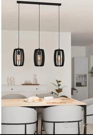 Lampadario a sospensione Eglo Bajazzara, in legno e metallo. Fissaggio con unico binario come da foto.