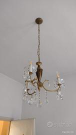 Lampadario a sospensione in metallo e vetro. Anni '70. 3 luci. Diametro di circa 45 cm. Alcune parti di vetro presentano delle piccole imperfezioni ma nel complesso è molto luminoso e piacevole. Se "visto e piaciuto" il pagamento è in contanti e lo smontaggio e il trasporto sono a carico dell'acquirente.