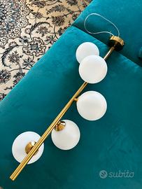 Lampadario a sospensione dalla struttura color oro con sfere color bianco opaco. Altezza regolabile tramite cavo trasparente. Bellissimo per rifinire ogni ambiente. Modello identico proposto anche da #westwing #maisonsdumonde ed altri prestigiosi brand. Nuovissimo, montato solo per fare foto. Acquistato, ma mai montato in quanto ne ho preferito uno diverso.