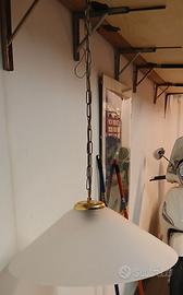 Vendo lampada a sospensione con paralume in vetro satinato ed attacchi color oro con catena a soffitto diametro paralume cm. 50.