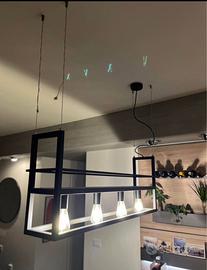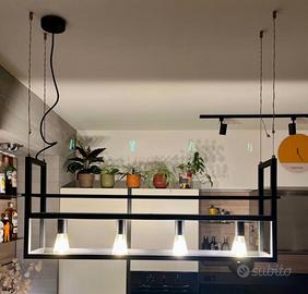 Splendida lampada a sospensione in condizioni perfette, perfetta per isola o penisola. Possibilità di posizionare nella mensola anche calici o piante. 4 lampadine dimmerabili incluse. Misure Larghezza: 102cm Profondità: 20cm Altezza (solo lampada): 40cm Possibilità di regolare l’altezza. Solo ritiro a mano a Bologna.