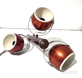 Bellissimo lampadario Space age Eyeball anni 70 color rame. Conservato e lasciato completamente originale. Può presentare segni di usura (a mio avviso assolutamente trascurabili) dovuti al tempo evidenziati dalle foto (vedi catenella). Era il 1957 quando venne lanciato nello spazio il primo satellite artificiale chiamato Sputnik. Questo evento diede inizio alla corsa tecnologica Già agli inizi degli anni ’50 si respirava entusiasmo verso la tecnologia, tant’è che molti settori di consumo ne furono influenzati Misure: Diametro 34cm ; H 80cm Spedizione possibile con TuttoSubito Per avere altre informazioni sugli oggetti in vendita visionate “Le cose di Egle” su Facebook o "lecosediegle" su Instagram.