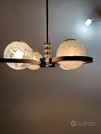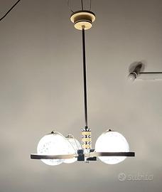 Vendo LAMPADARIO 4 BOCCE ANNI 70 con struttura in acciaio inox e legno a supportare quattro pregiate bocce in vetro opalino bianco, funzionante in ottime condizioni.