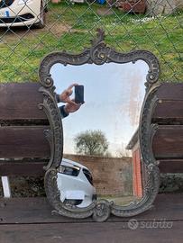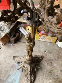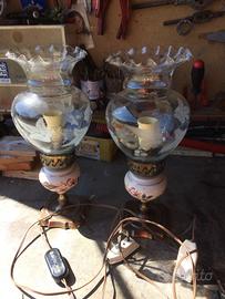 Lampadario per soffitto e due lampade per comodini anni 70 in buono stato,funzionali,in ceramica e vetro lavorato E candelabro in ottone e specchio sempre in ottone