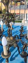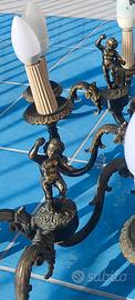 lampadario a 12 luci con 7 puttini o (angioletti) bronzato più 2 applique prezzo trattabile.
